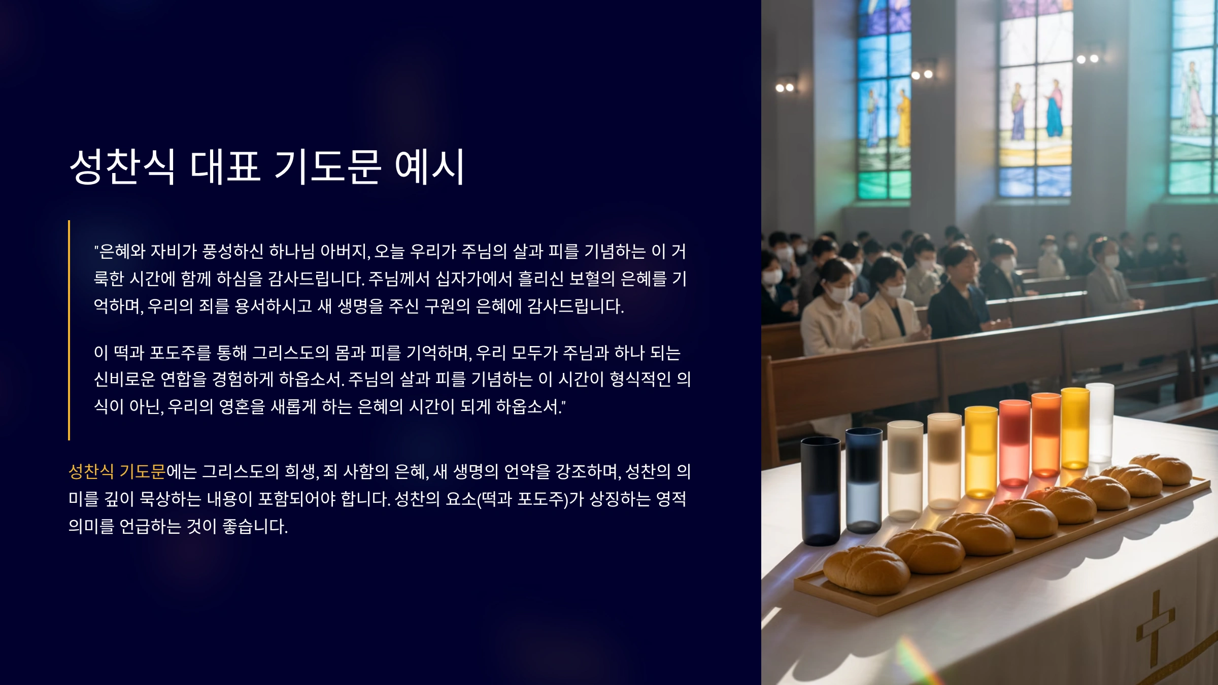 4. 성례주일 대표 기도문 종합 예시 ✨